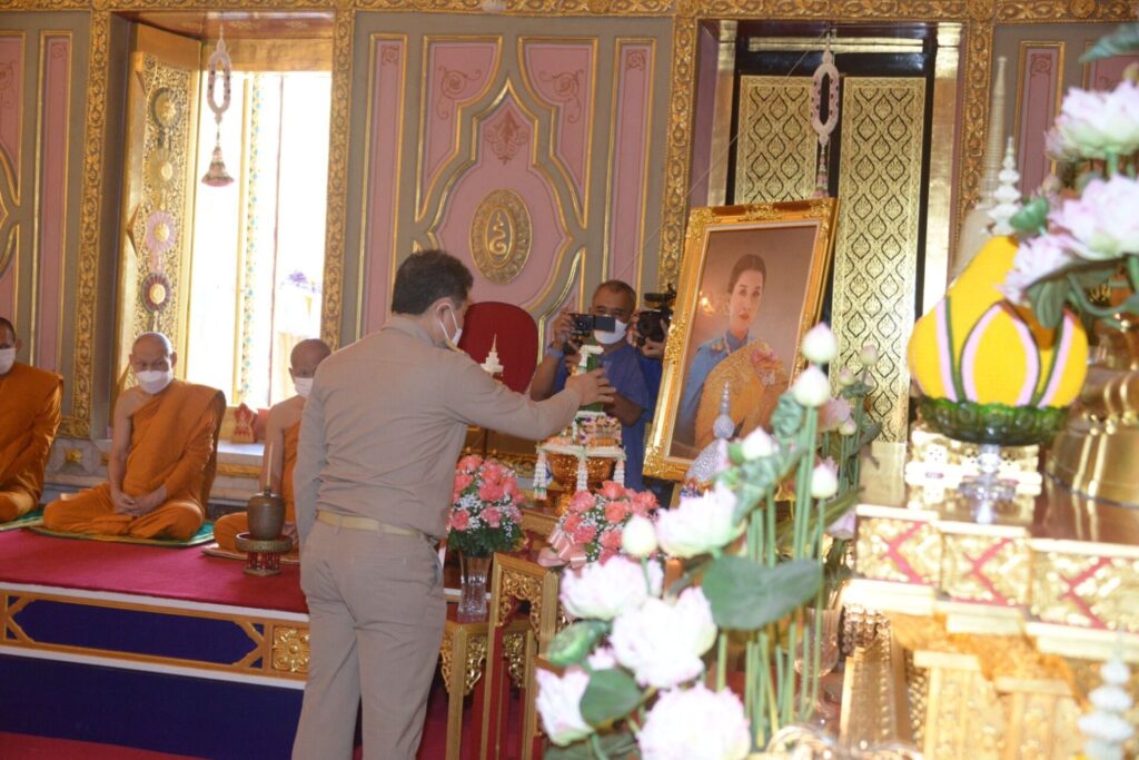 การนี้ เจ้าพระคุณสมเด็จพระอริยวงศาคตญาณ สมเด็จพระสังฆราช สกลมหาสังฆปริณายก ทรงจุดธูปเทียนบูชาพระรัตนตรัย นายสุทธิพงษ์ จุลเจริญ ปลัดกระทรวงมหาดไทย ถวายธูปเทียนแพเบื้องหน้าพระรูปสมเด็จพระเจ้าลูกเธอ เจ้าฟ้าพัชรกิติยาภา นเรนทิราเทพยวดี กรมหลวงราชสาริณีสิริพัชร มหาวัชรราชธิดา แล้วถวายสักการะเจ้าพระคุณสมเด็จพระอริยวงศาคตญาณ สมเด็จพระสังฆราช สกลมหาสังฆปริณายก เจ้าหน้าที่พิธีอาราธนาศีล พระสงฆ์ให้ศีล เจ้าหน้าที่พิธีอาราธนาพระปริตร พระสงฆ์เจริญพระพุทธมนต์ จำนวน 34 บท จบแล้ว เจ้าพระคุณสมเด็จพระอริยวงศาคตญาณ สมเด็จพระสังฆราช สกลมหาสังฆปริณายก นำเจริญจิตตภาวนา เพื่อถวายพระพรแด่สมเด็จพระเจ้าลูกเธอ เจ้าฟ้าพัชรกิติยาภา นเรนทิราเทพยวดี กรมหลวงราชสาริณีสิริพัชร มหาวัชรราชธิดา นายสุทธิพงษ์ จุลเจริญ ปลัดกระทรวงมหาดไทย พร้อมด้วย ดร.วันดี กุญชรยาคง จุลเจริญ นายกสมาคมแม่บ้านมหาดไทย นำคณะผู้บริหารระดับสูงถวายเครื่องไทยธรรม พระสงฆ์อนุโมทนา ประธานกรวดน้ำ รับพร นายสุทธิพงษ์ จุลเจริญ ปลัดกระทรวงมหาดไทย ถวายสักการะเจ้าพระคุณสมเด็จพระอริยวงศาคตญาณ สมเด็จพระสังฆราช สกลมหาสังฆปริณายก แล้วถวายความเคารพเบื้องหน้าพระรูปสมเด็จพระเจ้าลูกเธอ เจ้าฟ้าพัชรกิติยาภา นเรนทิราเทพยวดี กรมหลวงราชสาริณีสิริพัชร มหาวัชรราชธิดา เป็นอันเสร็จพิธี