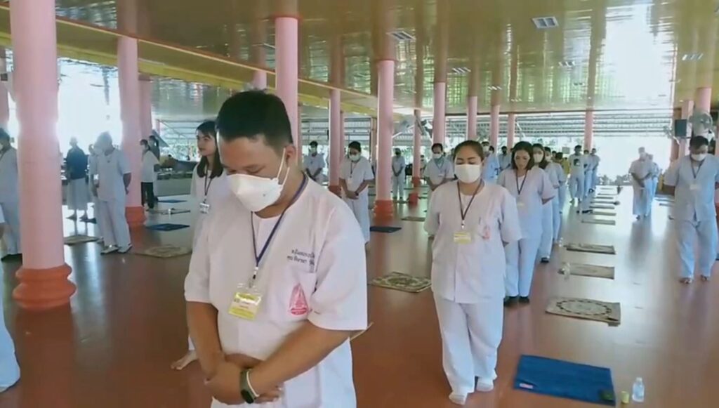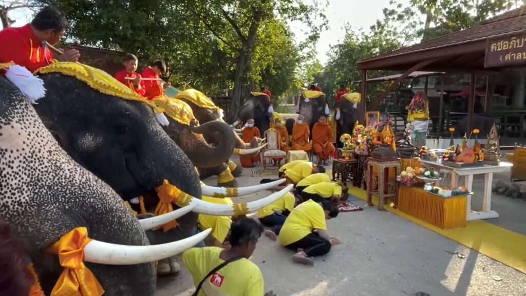 ขณะที่ นายลายทองเหรียญ มีพันธุ์ ผอ.วังช้างอยุธยา แล เพนียด นำควาญช้าง พนักงาน และครอบครัว กราบนิมนต์พระครูเกษมจันทวิมล นำอธิษฐานจิตเมตตาบารมีสมาธิ อธิษฐานจิตจากเหล่าคชสาร ควาญช้าง หมอช้าง และชาวช้าง เพื่อเป็นการปฏิบัติบูชาน้อมถวายพระพรแด่พระองค์ท่าน ร่วมบวงสรวงศาลปะกำ ขอพรจากพระเทวกรรม พระพิฆเนศ และเชือกปะกำ ตามแบบของชาวช้าง ขอประทานพร จากครู อาจารย์ หมอช้าง ครูบาปะกำ ครูบาปฏิยาย ดลบันดาล ให้พระองค์หายจากพระประชวร ณ หมู่บ้านช้างเพนียดหลวง จ.พระนครศรีอยุธยา
