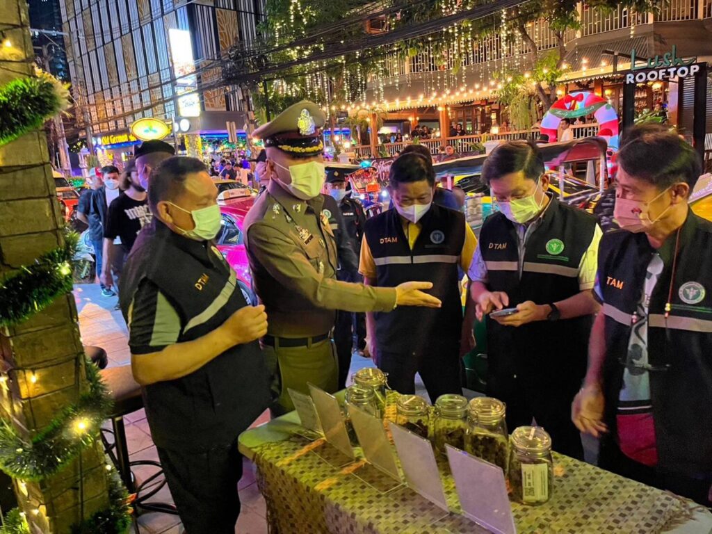 นพ.ธงชัย เลิศวิไลรัตนพงศ์ อธิบดีกรมการแพทย์แผนไทยและการแพทย์ทางเลือก พร้อมด้วย นพ.เทวัญ ธานีรัตน์ รองอธิบดีฯ, ดร.นันทศักดิ์ โชติชนะเดชาวงศ์ ผู้อำนวยการกองคุ้มครองและส่งเสริมภูมิปัญญาการแพทย์แผนไทยและแพทย์พื้นบ้านไทย, นายวรพจน์ ภู่จินดา ผู้อำนวยการกลุ่มกฎหมายและจริยธรรม ในฐานะพนักงานเจ้าหน้าที่ พร้อมด้วย พ.ต.อ.ปนาถพล ปุณศรี รอง ผบก.น.5, พ.ต.อ.นิมิตร นูโพนทอง ผกก.สน.ลุมพินี, พ.ต.อ.จิรกฤต จารุนภัทร์ ผกก.สส.บก.น.5 และเจ้าหน้าที่ผู้เกี่ยวข้องลงพื้นที่ถนนสุขุมวิท ซ.11 และบริเวณใกล้เคียง ภายใต้ความรับผิดชอบ สถานีตำรวจนครบาลลุมพินี เขตวัฒนา กรุงเทพฯ จากกรณีมีประชาชนร้องเรียนรถเร่ แผงลอย จำหน่ายช่อดอกกัญชา ก่อความรำคาญ รบกวน ประชาชน ในพื้นที่ดังกล่าว