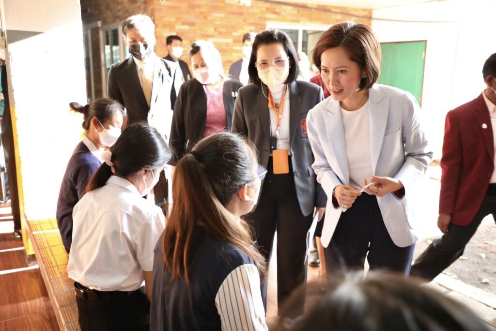 โรงเรียนสันติราษฎร์วิทยาลัย 25 ธ.ค.- “ตรีนุช” ลงพื้นที่ตรวจสนามสอบรับใบอนุญาตประกอบวิชาชีพครู ราบรื่น ทุกสนามสอบปฏิบัติตามมาตรการเข้าสอบป้องกันโควิด-19 อย่างเคร่งครัด