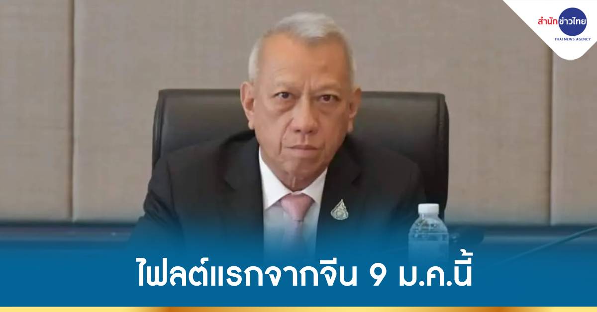 ทำเนียบ5ม.ค.- ททท.เผยเที่ยวบินแรกจากจีนมาไทย 9 ม.ค.นี้ ราว 200 คน จากเซี่ยเหมิน เชื่อหลังตรุษจีนทยอยเข้าไทย 3 เดือนแรก 300,000 คน เร่งเตรียมภาคบริการท่องเที่ยวรองรับ เพราะตอนนี้การจ้างงานของภาคท่องเที่ยวยังไม่เต็มร้อย
