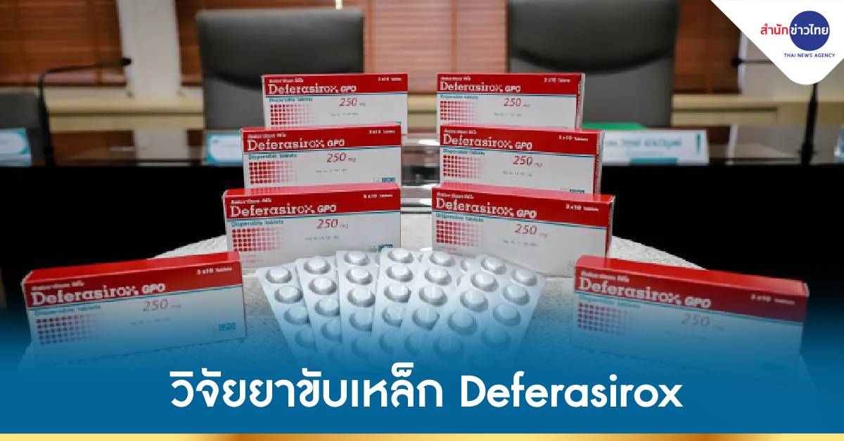 องค์การเภสัชกรรม ร่วมมือกับ ม.มหิดล, จุฬาลงกรณ์มหาวิทยาลัย และสถาบันวิจัยระบบสาธารณสุข ดำเนินงานวิจัยทางคลินิก เภสัชจลนศาสตร์ และเภสัชพันธุศาสตร์ ของยาขับเหล็ก Deferasirox ดีเฟอร์ราซิร็อก ให้เหมาะสมกับผู้ป่วยชาวไทย รวมทั้งเกิดการพัฒนาองค์ความรู้ใหม่ๆ และผลทางคลินิกของยา Deferasirox ให้แก่วงการแพทย์ เพื่อเป็นประโยชน์ในการวางแผนการรักษา และติดตามผลการรักษาผู้ป่วยโรคโลหิตจางธาลัสซีเมีย เพื่อให้ผู้ป่วยมีคุณภาพชีวิตที่ดี