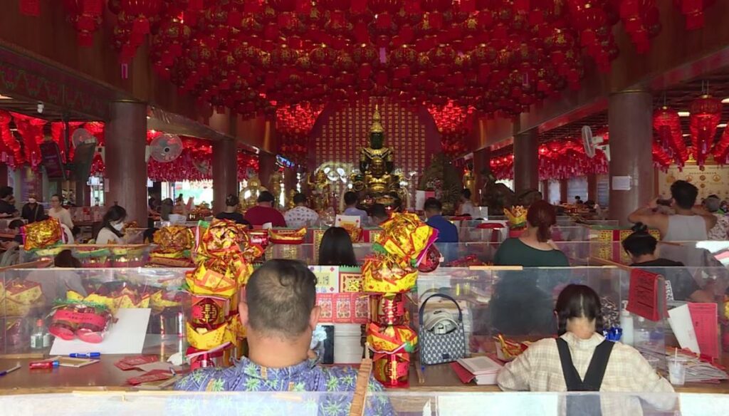กรุงเทพฯ 20 ม.ค. – นอกจากกิจกรรมไหว้เทพเจ้าขอพรในเทศกาลตรุษจีนแล้ว ยังมีอีก 1 กิจกรรมที่ได้รับความนิยมไม่แพ้กัน คือ การแก้ปีชง ไม่เฉพาะชาวไทยเชื้อสายจีน แต่ยังรวมถึงชาวจีน ที่แม้เปิดประเทศแล้ว แต่ยังเดินทางไม่สะดวก จึงเกิดธุรกิจฝากดวงคนไทยแก้ปีชงแบบออนไลน์. – สำนักข่าวไทย