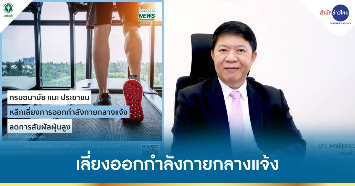 นายแพทย์สุวรรณชัย วัฒนายิ่งเจริญชัย อธิบดีกรมอนามัย กล่าวว่า ปัจจุบันสถานการณ์ฝุ่นละอองขนาดเล็ก (PM2.5) ในพื้นที่กรุงเทพมหานครและปริมณฑลมีแนวโน้มสูงขึ้น ประชาชนที่นิยมออกกำลังกายกลางแจ้งจึงควรหลีกเลี่ยงการออกกำลังกายในช่วงที่มีฝุ่นละอองเกินค่ามาตรฐาน เช่น การวิ่ง การปั่นจักรยาน การเล่นฟุตบอล เนื่องจากการออกกำลังกายจะทำให้อัตราการหายใจมากขึ้น ส่งผลให้โอกาสที่ฝุ่น (PM2.5) จะแพร่กระจายเข้าสู่ระบบทางเดินหายใจ ถุงลมปอด ซึมผ่านกระแสเลือด และไปยังอวัยวะต่าง ๆ มีมากขึ้น รวมถึงไปขัดขวางการนำออกซิเจนเข้าสู่ร่างกายส่งผลให้ปริมาณของออกซิเจนลดน้อยลง ทำให้ปอดและหัวใจทำงานหนักขึ้น และที่สำคัญห้ามสวมหน้ากากทุกชนิด ในขณะที่ออกกำลังกายอย่างเด็ดขาด เพราะจะทำให้ร่างกายต้องหายใจแรงและเร็วขึ้น ส่งผลให้ระบบหัวใจและหลอดเลือดทำงานหนักมากขึ้นและอาจเป็นอันตรายได้