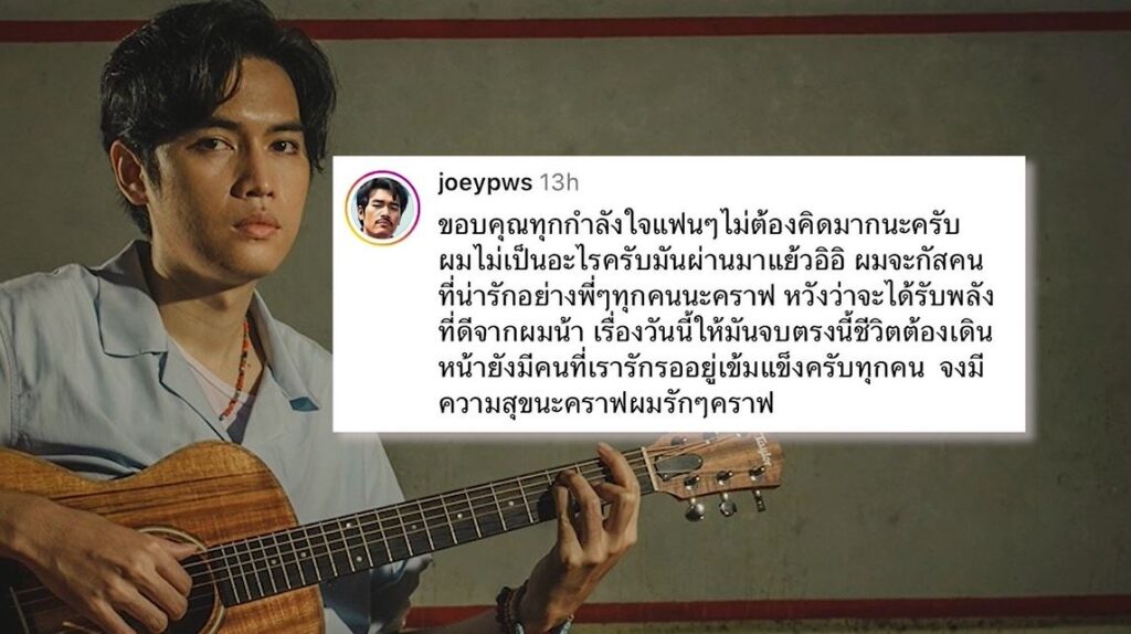 ล่าสุดโจอี้ตอบคอมเมนต์ที่แฟนๆ แห่เข้าไปให้กำลังใจในอินสตาแกรมส่วนตัว ระบุว่า “ขอบคุณทุกกำลังใจแฟนๆ ไม่ต้องคิดมากนะครับ ผมไม่เป็นอะไรครับ มันผ่านมาแล้ว ผมจะโฟกัสคนที่น่ารักอย่างพี่ๆ ทุกคนนะคราฟ หวังว่าจะได้รับพลังที่ดีจากผมน้า เรื่องวันนี้ให้มันจบตรงนี้ ชีวิตต้องเดินหน้า ยังมีคนที่เรารักรออยู่ เข้มแข็งครับทุกคน จงมีความสุขนะคราฟผมรักๆ คราฟ”