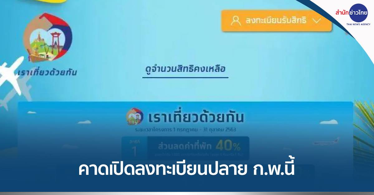 กทม.3ก.พ.-ททท.เตรียมหารือธนาคารกรุงไทย ถึงความพร้อมเปิดลงทะเบียนเราเที่ยวด้วยกันเฟส 5 คาดว่าเปิดลงทะเบียนเร็วสุด ปลาย ก.พ.นี้