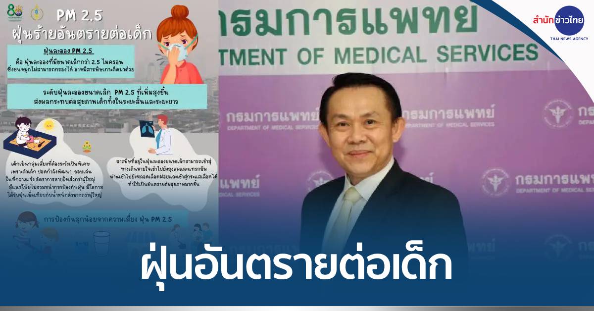 นพ.ธงชัย กีรติหัตยากร อธิบดีกรมการแพทย์ เปิดเผย PM 2.5 เป็นฝุ่นที่มีขนาดเล็กกว่า 2.5 ไมครอน ซึ่งขนจมูกไม่สามารถกรองได้ และอาจมีสารพิษเกาะติดมาด้วย สามารถเข้าสู่ทางเดินหายใจเข้าไปยังถุงลมและแทรกซึมผ่านเข้าไปยังหลอดเลือดฝอยและเข้าสู่กระแสเลือดได้ ทำให้เป็นอันตรายต่อสุขภาพมากขึ้น ไปรบกวนการทำงานของอวัยวะต่างๆ ทำให้เกิดผลกระทบต่อสุขภาพ ทั้งในระยะสั้น ได้แก่ ทำให้ไอ จาม ระคายเคืองตา แสบตา ตาแดง ระคายเคืองผิวหนัง เกิดผื่นคัน และก่อให้เกิดผลกระทบระยะยาวต่อระบบทางเดินหายใจ ได้แก่ มะเร็งปอด ระบบหัวใจและหลอดเลือด หัวใจวาย ความดันโลหิตสูง คลอดก่อนกำหนด ทารกคลอดน้ำหนักตัวน้อย นอกจากนี้ยังมีผลกระทบต่อพัฒนาการและระบบสมองของทารก