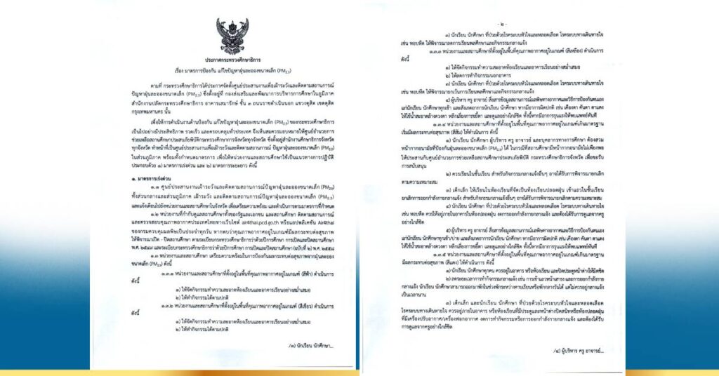 3 ก.พ. – ศธ.ออกประกาศมาตรการป้องกัน แก้ไขปัญหาฝุ่นละอองขนาดเล็ก (PM2.5) ให้เป็นแนวทางเดียวกันทั่วประเทศ