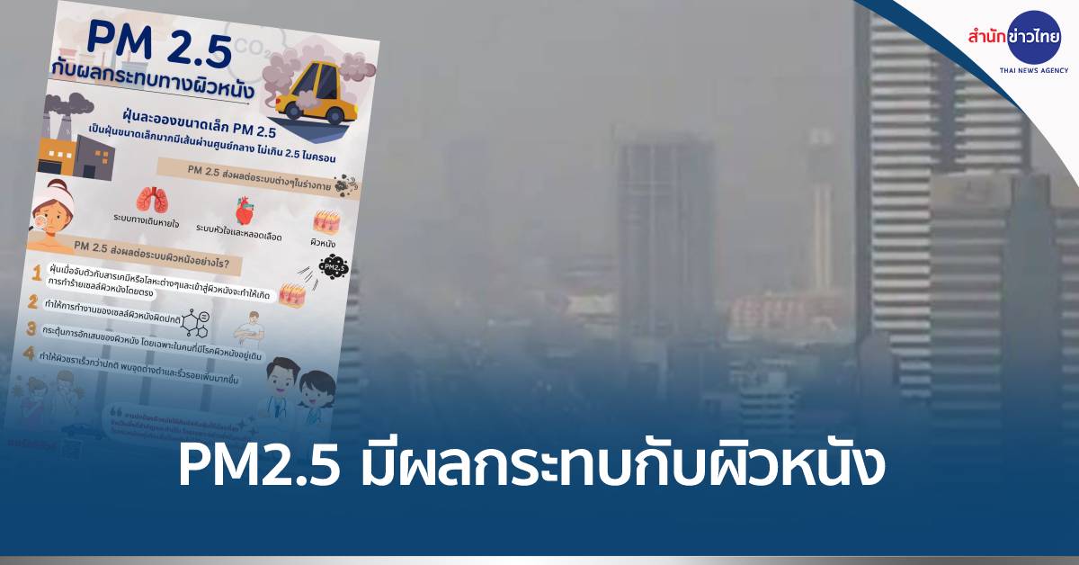 นพ.ธงชัย กีรติหัตถยากร อธิบดีกรมการแพทย์ กล่าวว่า ผิวหนังเป็นอวัยวะหลักที่ต้องเผชิญกับสิ่งแวดล้อมและมลภาวะต่างๆ ตลอดเวลา ดังนั้นจึงไม่ใช่เรื่องแปลกที่ฝุ่นละอองดังกล่าวจะส่งผลต่อผิวหนังด้วยข้อมูลจากงานวิจัยพบว่า ฝุ่นละอองขนาดเล็ก PM2.5 สามารถจับตัวกับสารเคมีและโลหะต่าง ๆและนำพาเข้าสู่ผิวหนัง มีผลทำร้ายเซลล์ผิวหนังโดยตรง และทำให้การทำงานของเซลล์ผิวหนังผิดปกติ ทั้งในด้านกลไกการป้องกันของผิวหนังจากสิ่งแวดล้อมภายนอกและการซ่อมแซมผิวหนัง กระตุ้นให้เกิดกระบวนการอักเสบของเซลล์ผิวหนัง ทำให้เกิดผื่นคัน โดยเฉพาะในผู้ที่มีโรคผิวหนังอยู่เดิม เช่น โรคภูมิแพ้ผิวหนังหรือโรคผื่นผิวหนังอักเสบ จะมีการระคายเคืองคันมากยิ่งขึ้น ผื่นกำเริบมากขึ้นได้