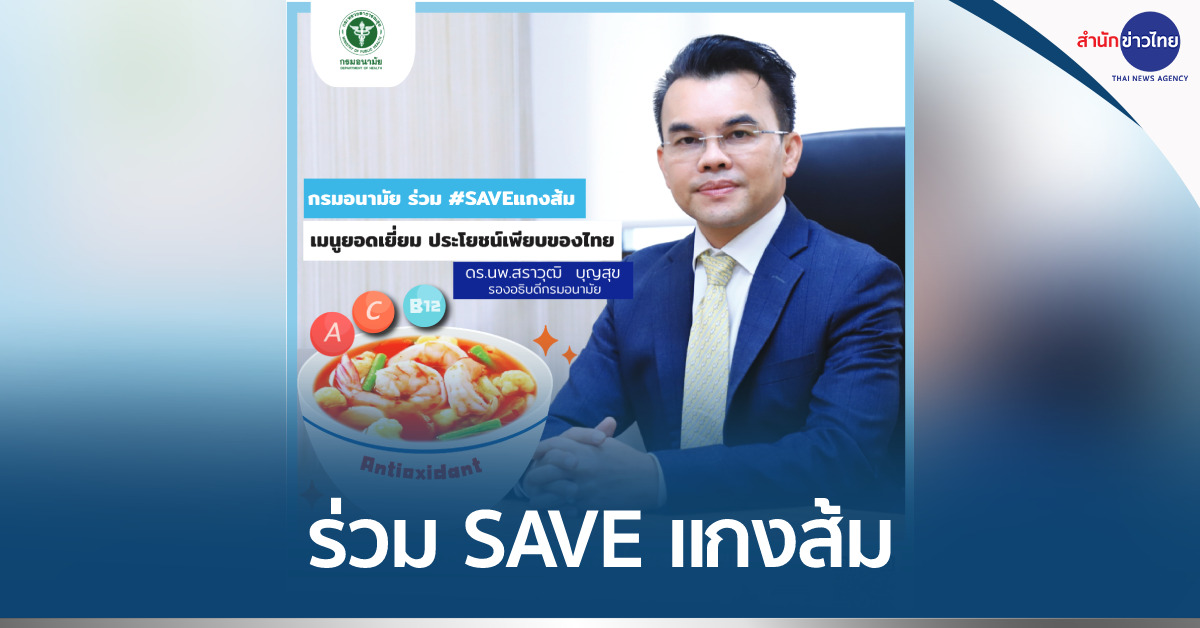 กรุงเทพฯ 7 ก.พ. – กรมอนามัย ร่วม SAVE แกงส้ม หลังถูกจัดอับดับเป็นอาหารยอดแย่ที่ 12 ของโลก เผยแกงส้ม เป็นเมนูชูสุขภาพ อยู่คู่ครัวไทย เพียบพร้อมทั้งคุณค่าทางโภชนาการ และคุณประโยชน์