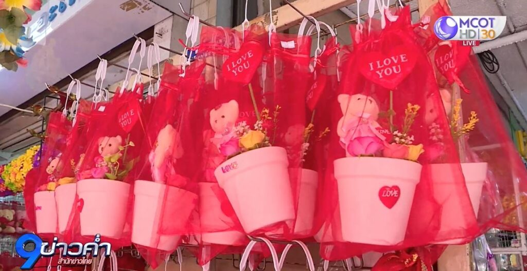 เจ้าของร้านอัญชัญดอกไม้สด เล่าว่า ปีนี้ต้นทุนมาสูงขึ้น 20-30% โดยดอกกุหลาบที่ร้านมาจากทั้งที่เชียงใหม่ สายพันธุ์มาเชล สีที่ขายดีคือสีชมพูอมขาว นำมาจัดช่อ ราคา 600-700 บาท ส่วนดอกกุหลาบสายพันธุ์จากจีน สีแดงดอกใหญ่ ก็เป็นที่นิยม โดยจัดแบบเป็นช่อมีดอกกุหลาบใหญ่ดอกเดียว ไว้รองรับลูกค้าที่ต้องการประหยัดงบ ในราคา 150 บาท ทางร้านใส่น้ำเลี้ยงก้านดอกเอาไว้ให้ในช่อด้วย ซึ่งจะช่วยให้ดอกไม้อยู่ได้นาน 4-5 วัน ขณะเดียวกันก็พบว่ามีบรรดาแม่ค้าจากต่างหวัดเดินทางมาซื้อดอกไม้ไปขายต่อช่วงเทศกาลวาเลนไทน์ ส่วนใหญ่เน้นดอกกุหลาบสีแดง