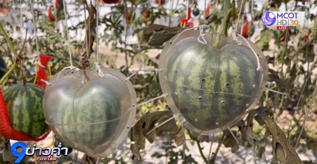 แตงโมรูปหัวใจ ทยอยขายรับวันแห่งความรัก