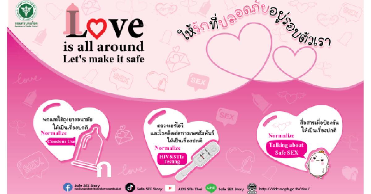 นพ.โอภาส การย์กวินพงศ์ ปลัดกระทรวงสาธารณสุข กล่าวว่า วันที่ 14 กุมภาพันธ์ ตรงกับวันวาเลนไทน์หรือวันแห่งความรัก เป็นเทศกาลที่คนแสดงความรักต่อกัน โดยเฉพาะในกลุ่มวัยรุ่นและเยาวชนจะให้ความสำคัญกับความรักในช่วงวันวาเลนไทน์นี้เป็นอย่างมาก อีกทั้งยังมองว่าการมีเพศสัมพันธ์กับคู่รัก ถือเป็นการแสดงความรักในอีกรูปแบบหนึ่ง ส่งผลให้เกิดความเสี่ยงมีเพศสัมพันธ์ที่ไม่ได้ป้องกันได้ กรมควบคุมโรค โดยกองโรคเอดส์และโรคติดต่อทางเพศสัมพันธ์ จึงชูแคมเปญ “Love is All Around ให้รักที่ปลอดภัยอยู่รอบตัวเรา” โดยเน้นย้ำให้มี “รัก” ที่ปลอดภัย ดังนี้ “ให้พกและใช้ถุงยางอนามัย ให้เป็นเรื่องปกติ” โดยใช้ถุงยางอนามัยทุกครั้งที่มีเพศสัมพันธ์ กับทุกคน ทุกช่องทาง เลือกให้ถูกไซซ์ ใช้ให้ถูกขั้นตอน (Step) เก็บและทิ้งให้ถูกวิธี ป้องกันได้ทั้งการติดเชื้อเอชไอวี โรคติดต่อทางเพศสัมพันธ์ และการตั้งครรภ์ “ให้สื่อสารเพื่อป้องกัน ให้เป็นเรื่องปกติ” เพื่อให้เราและคู่กล้าพูดและสร้างความเข้าใจที่ถูกต้องเรื่องการใช้ถุงยางอนามัยโดยไม่เขินอาย กล้าที่จะสื่อสารเจรจาต่อรองให้มีรักที่ปลอดภัย
