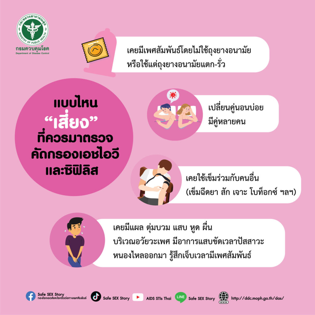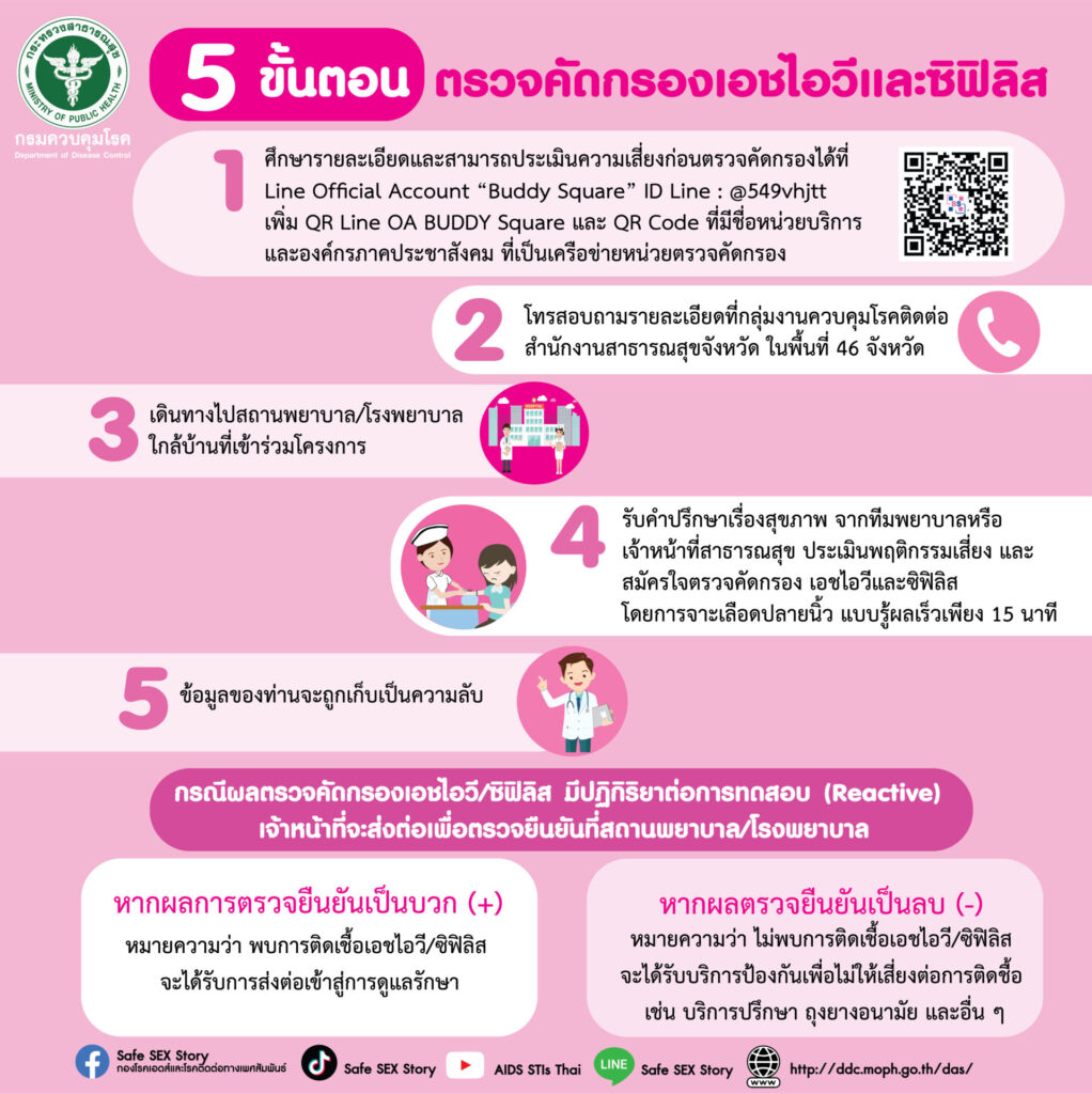 นพ.ธเรศ กล่าวต่อว่า สนับสนุนให้วัยรุ่นและเยาวชน เข้ารับการตรวจคัดกรองเอชไอวีและซิฟิลิสแบบสมัครใจ โดยข้อมูลผู้รับบริการทั้งหมดจะถูกเก็บเป็นความลับ เจ้าหน้าที่จะให้คำปรึกษาเรื่องสุขภาพ ประเมินความเสี่ยง และตรวจคัดกรองหาเชื้อ โดยการเจาะเลือดที่ปลายนิ้ว ใช้เวลาเพียง 15 นาทีก็รู้ผล หากผลตรวจยืนยันเป็นบวกหรือติดเชื้อ จะได้รับการส่งต่อเข้าสู่ระบบการรักษาทันที หากผลเป็นลบหรือไม่พบการติดเชื้อ จะได้รับบริการส่งเสริมการป้องกัน เช่น ถุงยางอนามัย ทั้งนี้ สามารถศึกษารายละเอียดและประเมินความเสี่ยงได้ที่ Line Official Account “Buddy Square” ID Line : @549vhjtt นอกจากนี้ กองโรคเอดส์และโรคติดต่อทางเพศสัมพันธ์ ได้จัดบริการตรวจคัดกรองโรคหนองใน หนองในเทียม ซิฟิลิส และเอชไอวี ฟรีตลอดเดือนกุมภาพันธ์ 2566 ที่ศูนย์การแพทย์บางรัก กรมควบคุมโรค ชั้น 9 สอบถามรายละเอียดเพิ่มเติม โทร. 0 2590 3291 และ 0 2286 2465.-สำนักข่าวไทย