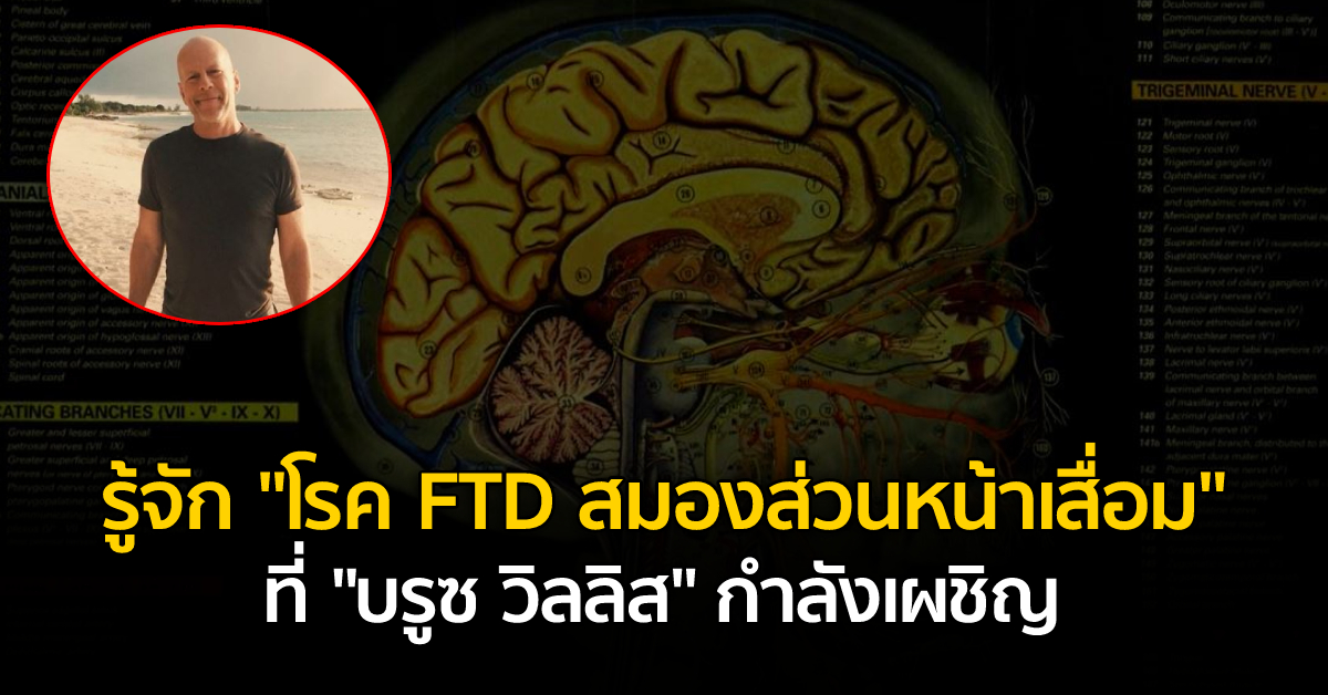 กรุงเทพฯ 18 ก.พ. – พาไปทำความรู้จัก “โรค FTD สมองส่วนหน้าเสื่อม” โรคที่ “บรูซ วิลลิส” พระเอกดังระดับตำนานของวงการฮอลลีวูด กำลังเผชิญอยู่ ซึ่งปัจจุบันยังไม่มีวิธีรักษา การวินิจฉัยก็ยังทำได้ยาก.-สำนักข่าวไทย