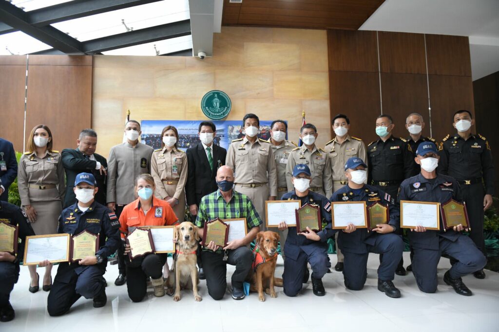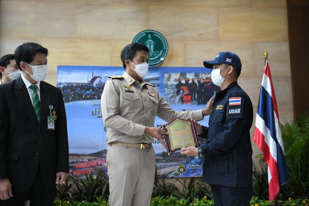 กรุงเทพฯ 20 ก.พ. – ผู้ว่าฯ กทม. มอบโล่และวุฒิบัตรประกาศเกียรติคุณ USAR Thailand กทม. และทีม K9 ภารกิจ Thailand for Turkey