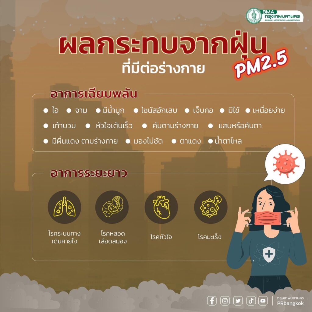สำหรับผู้ป่วยระบบทางเดินหายใจที่มีสาเหตุมาจากฝุ่น PM 2.5 ส่วนใหญ่จะมีอาการไอ แน่นหน้าอก วิงเวียนศีรษะ คลื่นไส้ อาเจียน ผื่นแดง หอบหืดเฉียบพลัน หรือหลายอาการร่วมกัน ซึ่งต้องได้รับคำแนะนำและการดูแลอย่างใกล้ชิดจากแพทย์ โดยทางคลินิกมลพิษทางอากาศ จะคัดกรองอาการ ให้คำแนะนำและให้การรักษา รวมถึงการซักประวัติเพิ่มเติม เพื่อหาสาเหตุและให้ข้อแนะนำในการปรับพฤติกรรมต่างๆ ให้เหมาะสม ซึ่งประชาชนสามารถคัดกรองประเมินอาการตนเองในเบื้องต้น และหากมีอาการรุนแรงสามารถเข้าสู่ระบบการรักษาที่โรงพยาบาลได้ทันที ทั้งนี้ เป็นไปตามสิทธิการรักษาพยาบาลที่แต่ละท่านมีตามกฎหมาย.-สำนักข่าวไทย
