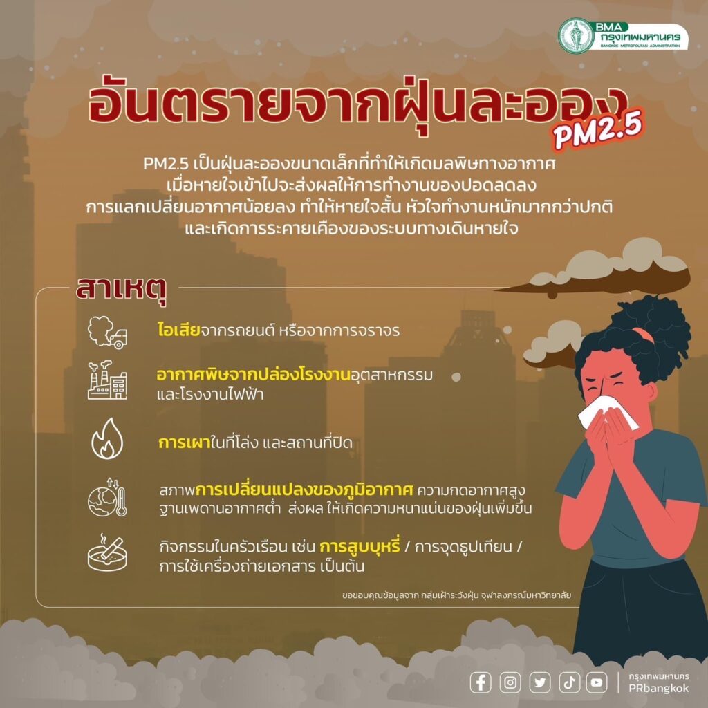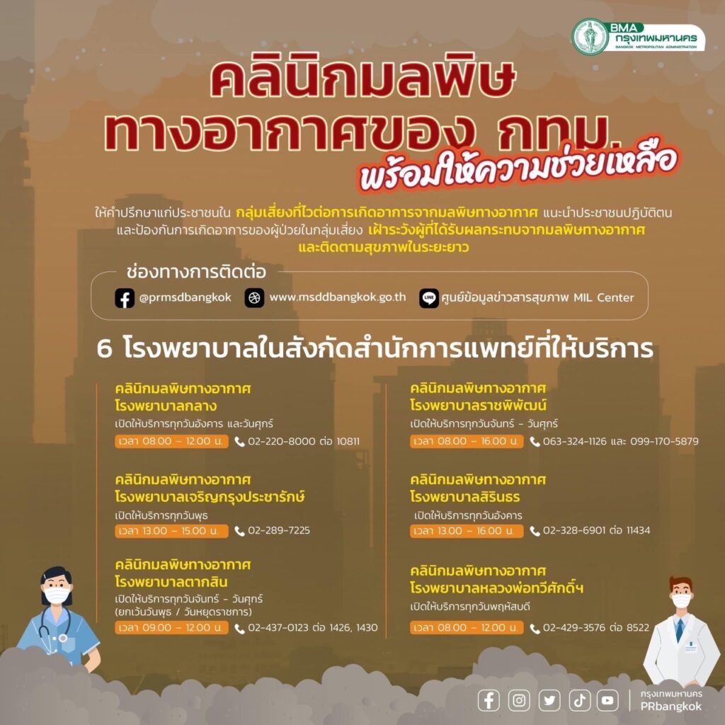 นายเอกวรัญญู อัมระปาล โฆษกของกรุงเทมหานคร เปิดเผยถึงสถานการณ์ผู้ป่วยที่เข้ามารับการรักษา ณ คลินิกมลพิษทางอากาศของกรุงเทพมหานคร ตั้งแต่วันที่ 1-12 มี.ค. 66 ว่ามีประชาชนเข้ามารับบริการ ณ คลินิกมลพิษทางอากาศซึ่งตั้งอยู่ในโรงพยาบาลสังกัดกรุงเทพมหานคร ทั้ง 6 แห่ง ประกอบด้วย โรงพยาบาลกลาง โรงพยาบาลตากสิน โรงพยาบาลเจริญกรุงประชารักษ์ โรงพยาบาลสิรินธร โรงพยาบาลราชพิพัฒน์ และโรงพยาบาลหลวงพ่อทวีศักดิ์ฯ รวมจำนวนทั้งสิ้น 148 ราย โดยในวันที่ 10 มี.ค. มีผู้ป่วยมาเข้ารับการรักษามากที่สุด 48 ราย อย่างไรก็ตาม หลังจากวันที่ 10 มี.ค. จำนวนผู้ป่วยลดลงตามลำดับ โดยวานนี้ (12 มี.ค.) มีผู้ป่วยเข้ารับบริการ 8 ราย