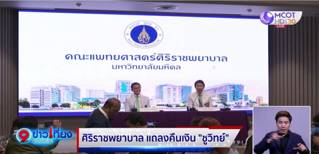ที่ผ่านมาทางคณะแพทยศาสตร์ศิริราชพยาบาล ไม่เคยตรวจสอบที่มาของเงิน ขณะนี้ได้ทำเรื่องติดต่อขอคืนเงินเรียบร้อยแล้ว ยอมรับว่าเหตุการณ์คืนเงินบริจาคในลักษณะนี้ นับเป็นครั้งแรก ที่ผ่านมาเคารพในเจตนาอันดีของผู้บริจาคที่มีวัตถุประสงค์เพื่อช่วยเหลือผู้ยากไร้และเพื่อพัฒนาวงการการแพทย์ เบื้องต้นได้แจ้งให้ทางศิริราชมูลนิธิ ทำเรื่องคืนเงิน ออกเช็คจำนวน 3 ล้านบาท ให้กับนายชูวิทย์โดยเร็วที่สุด