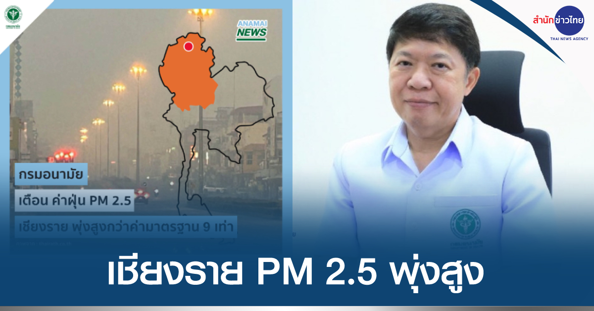 กรมอนามัย 26 มี.ค. – กรมอนามัย กระทรวงสาธารณสุข เผยสถานการณ์ฝุ่น PM 2.5 ในพื้นที่ ต.เวียงพางคำ อ.แม่สาย จ.เชียงราย มีค่าเฉลี่ย 24 ชั่วโมง สูงถึง 480 ไมโครกรัม/ลูกบาศก์เมตร ซึ่งสูงกว่าค่ามาตรฐานของประเทศไทย 9 เท่า และค่าแนะนำขององค์การอนามัยโลก 32 เท่า รวมทั้งเหนือ-อีสาน ค่าฝุ่นอยู่ในระดับที่เป็นอันตรายต่อสุขภาพ วอนประชาชนในพื้นที่หยุดเผา และงดการทำกิจกรรมนอกบ้าน พร้อมสวมหน้ากากป้องกันฝุ่น