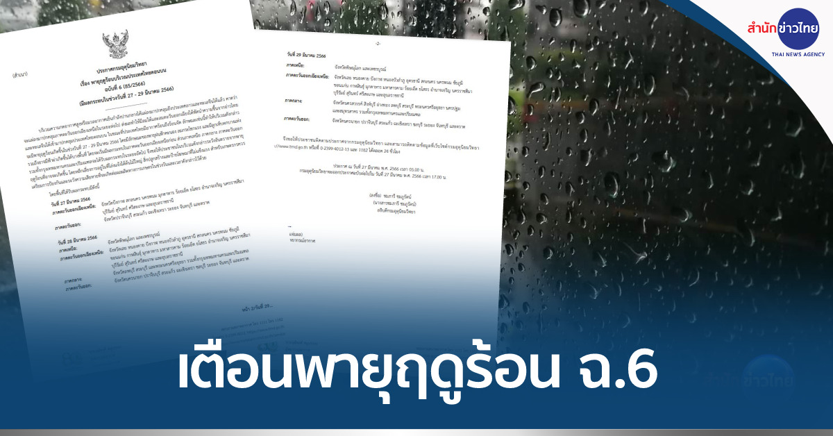 ประกาศกรมอุตุนิยมวิทยา เรื่อง พายุฤดูร้อนบริเวณประเทศไทยตอนบน ฉบับที่ 6 (85/2566) มีผลกระทบในช่วงวันที่ 27 – 29 มีนาคม 2566