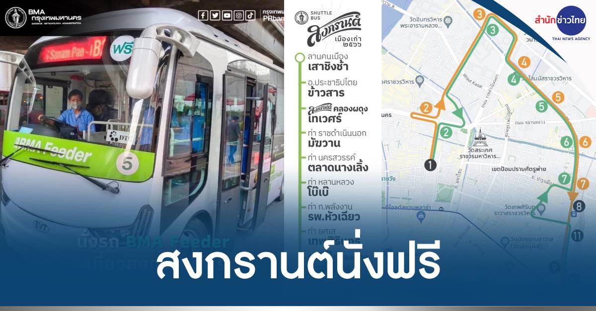 กทม. 9 เม.ย.-นั่งรถ BMA Feeder เที่ยวสงกรานต์ฟรีกับ กทม. เส้นทางลานคนเมือง-คลองผดุงฯ-ถนนข้าวสาร ระหว่างวันที่ 8-16 เม.ย.66 ตั้งแต่เวลา 16.00-20.00 น.