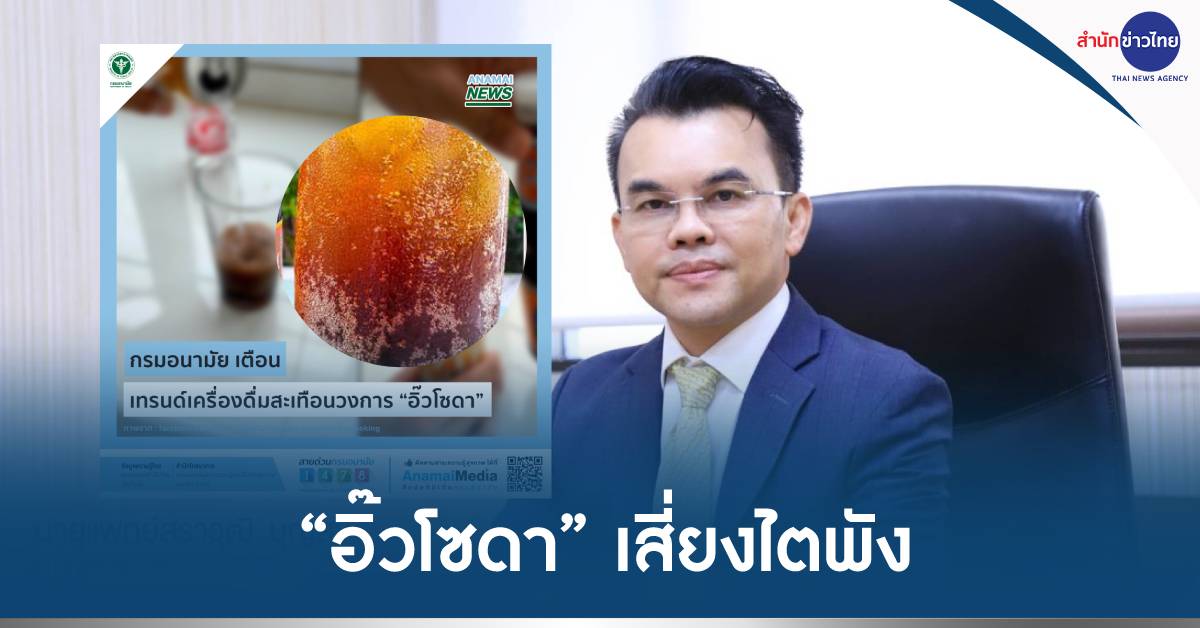นพ.สราวุฒิ บุญสุข รองอธิบดีกรมอนามัย กล่าวถึงเทรนด์เครื่องดื่มใหม่ “อิ๊วโซดา” ที่กำลังเป็นกระแสในโลกโซเชียล โดยการนำซีอิ๊วดำสูตรเฉพาะ (สูตรราดบนไอศกรีม) 3 ช้อนโต๊ะผสมกับเครื่องดื่มโซดา 1 กระป๋อง เพื่อดื่มคลายร้อน ซึ่งซีอิ๊วนี้มีส่วนประกอบหลัก คือ น้ำตาลทรายร้อยละ 56 กลูโคสไซรัป ร้อยละ 13.4 และซีอิ๊ว (soy sauce) ร้อยละ 13.6 จากส่วนผสมดังกล่าว หากผสมซีอิ๊ว 3 ช้อนโต๊ะ เครื่องดื่มแก้วนั้น จะมีปริมาณน้ำตาลสูง ซึ่งข้อมูลจากสำนักงานคณะกรรมการอ้อยและน้ำตาลทราย สำรวจพบคนไทยกินน้ำตาลมากถึง 25 ช้อนชาต่อวัน ซึ่งเกินกว่าที่องค์การอนามัยโลก (WHO) กำหนด คือ ไม่ควรกินน้ำตาลเกิน 6 ช้อนชาต่อวัน หากประชาชนนำซีอิ๊วดำที่ผลิตสำหรับใช้เป็นเครื่องปรุงรสมาทำตามอัตราส่วนดังกล่าว เครื่องดื่มแก้วนั้นจะมีโซเดียมสูงถึง 3,600 มิลลิกรัม (ซีอิ๊วดำ 1 ช้อนโต๊ะ มีโซเดียมประมาณ 1,200 มิลลิกรัม) ซึ่งเกินกว่าปริมาณที่ร่างกายควรได้รับ