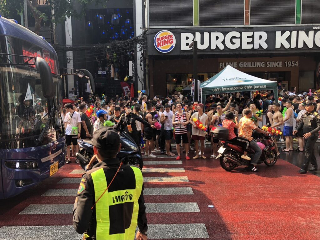 แม้ว่าถนนสีลมปีนี้จะไม่ปิดถนน และงดกิจกรรมสงกรานต์ แต่นักท่องเที่ยวทั้งชาวไทยและต่างชาติตั้งใจจะมาเล่นน้ำที่ถนนสีลมกันอย่างสนุกสนาน โดยเฉพาะกลุ่ม LGBT ถอดเสื้อเล่นน้ำคลายร้อนกันอย่างคึกคัก ทำให้ทางเท้าทั้ง 2 ฝั่งถนน เนืองแน่นไปด้วยนักท่องเที่ยวที่ยืนปักหลักเล่นน้ำกัน โดยมีเจ้าหน้าที่เทศกิจเขตบางรัก คอยอำนวยความสะดวกดูแลคนที่ข้ามไปมา ส่วนรถสัญจรได้ปกติ แต่อาจติดขัด เพราะคนข้ามไปมาตลอดเวลา