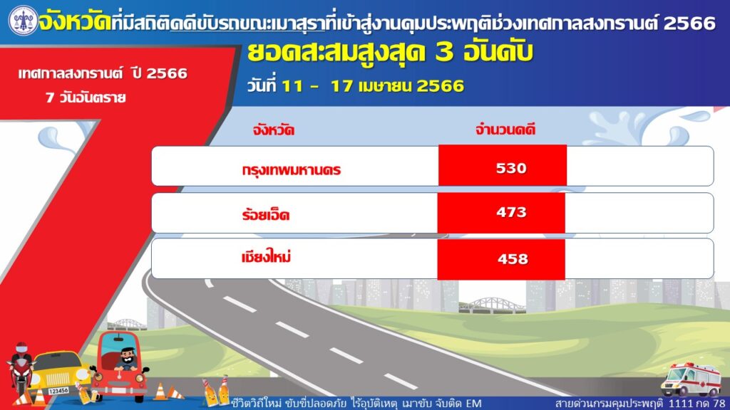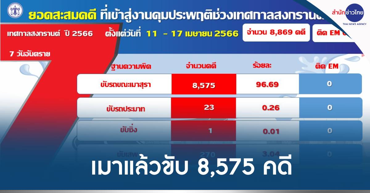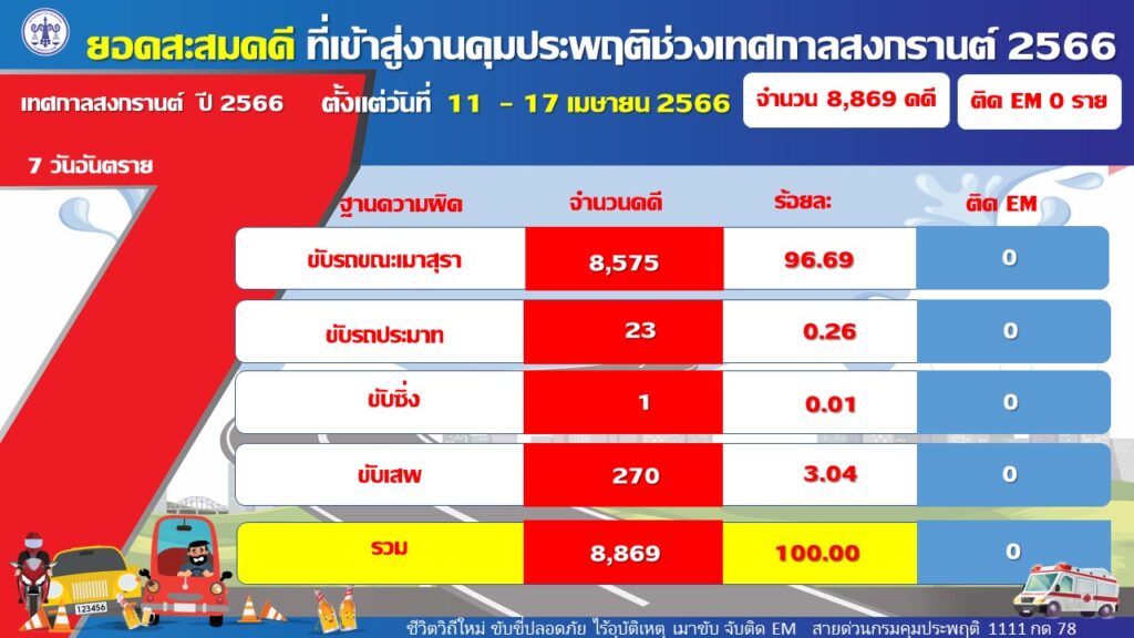กทม. 18 เม.ย.-กรมคุมประพฤติ ปิดยอด 7 วันอันตรายสงกรานต์ 2566 เมาแล้วขับ 8,575 คดี กรุงเทพฯ ครองแชมป์