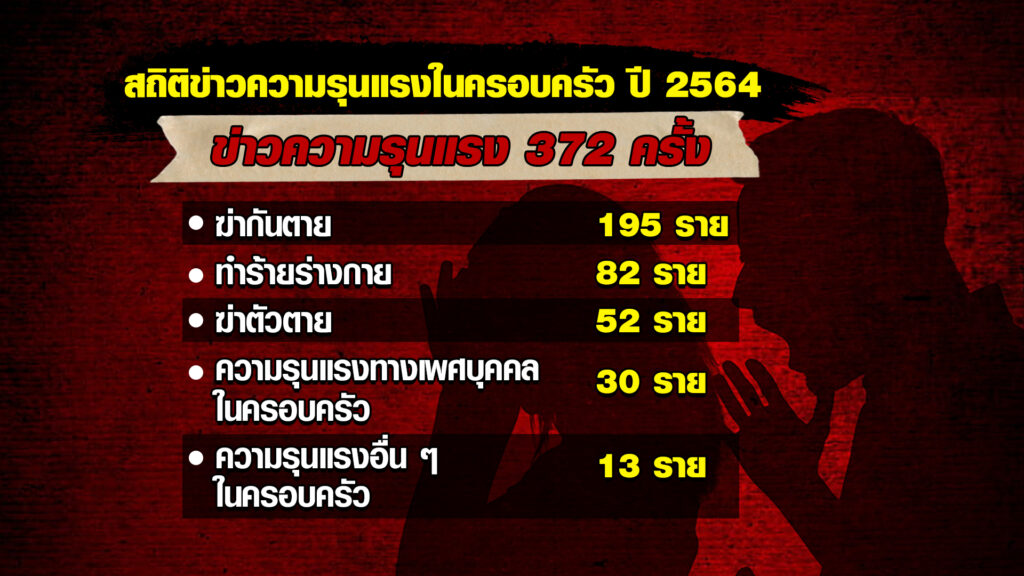 จากกรณี “จีจี้” สุพิชชา เน็ตไอดอล อายุ 20 ปี และอินฟลูเอนเซอร์ชื่อดัง ถูกพบเป็นศพถูกยิงพร้อมแฟนหนุ่มนักเรียนเตรียมทหาร ในคอนโดฯ หรูย่านอโศก นายจะเด็จ เชาวน์วิไล ผู้อำนวยการมูลนิธิหญิงชายก้าวไกล เปิดเผยถึงแนวโน้มสถานการณ์ความรุนแรงในครอบครัว ซึ่งทางมูลนิธิฯ เก็บสถิติข่าวความรุนแรงในครอบครัว พบว่ามีแนวโน้มเพิ่มสูงขึ้นอย่างต่อเนื่อง เฉพาะปี 2564 มีข่าวความรุนแรงในครอบครัวถึง 372 ครั้ง แบ่งเป็นการฆ่ากันตาย 195 ราย ทำร้ายร่างกายกัน 82 ราย ฆ่าตัวตาย 52 ราย ความรุนแรงทางเพศของบุคคลในครอบครัว 30 ราย และความรุนแรงอื่นๆ ในครอบครัว 13 ราย โดยกลุ่มอายุที่พบถูกคู่รักกระทำความรุนแรงมากที่สุดคือ ผู้หญิงอายุ 20-30 ปี รองลงมเป็นกลุ่มอายุ 15-20 ปี
