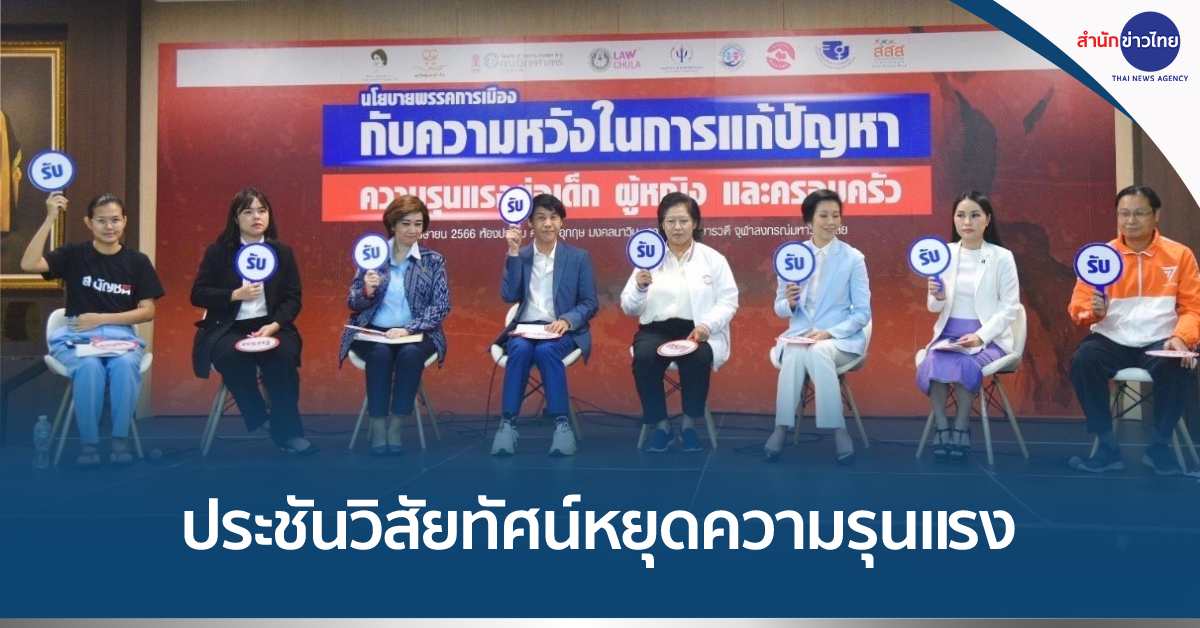 กรุงเทพฯ 26 เม.ย. – เลือกตั้ง 66 พบสถิติความรุนแรงในไทยพุ่งปีละ 1.5 พันราย สสส. สานพลังภาคีเครือข่าย จัดดีเบต 8 พรรคการเมือง ประชันวิสัยทัศน์หยุดความรุนแรงเด็ก-ผู้หญิง-ครอบครัว ตัดตอนปัญหาถูกทำร้ายซ้ำซาก แก้ช่องโหว่กฎหมาย สร้างระบบคุ้มครองสิทธิ-ช่วยเหลือมีประสิทธิภาพ