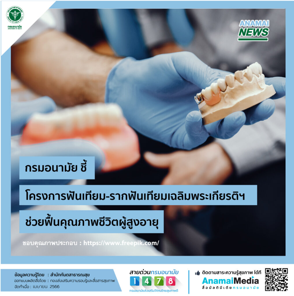 28 เม.ย. – กรมอนามัยชูโครงการฟันเทียมพระราชทานและโครงการรากฟันเทียมเฉลิมพระเกียรติฯ ช่วยฟื้นคุณภาพชีวิตผู้สูงอายุ กลับมาบดเคี้ยวอาหารได้ละเอียด เพิ่มความมั่นใจในการเข้าสังคม และลดปัญหาโรคแทรกซ้อนอันเกิดจากปัญหาสุขภาพช่องปาก