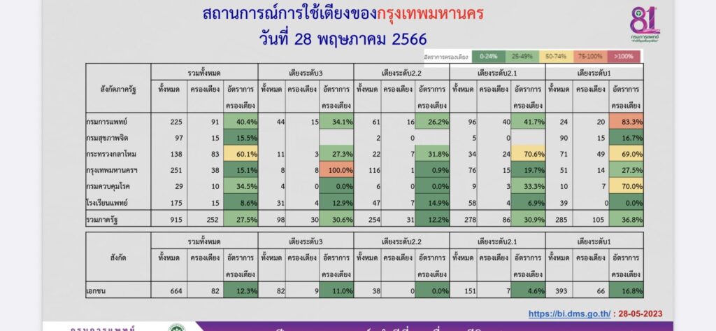 นพ.ณัฐพงศ์ วงค์วิวัฒน์ รองอธิบดีกรมการแพทย์ กล่าวว่า สถานการณ์การครองเตียงภาพรวมอยู่ที่ 21.92% การบริหารเตียงยังคงทำได้อย่างมีประสิทธิภาพ จำนวนเตียงระดับ 3 และ 2.2 ยังมีเพียงพอ ส่วนอาการของผู้ป่วยที่พบในขณะนี้ มีอาการน้อย เกณฑ์การให้ยา จะเน้นในคนป่วยที่มีอาการ และมีโรคร่วมเป็นหลัก คนไม่มีอาการรุนแรง ไม่มีโรคประจำตัว รับยาตามอาการ คนที่มี อาการเล็กน้อย แต่มีโรคร่วม อาจให้ยาฟาวิพิราเวียร์ โมลนูพิราเวียร์ แต่คนที่มีโรคร่วม อาจให้ยาเรมเดซิเวียร์ หรือแพกโลวิดซ์ แต่ปัญหาเตียงที่พบใน รพ.เกิดจาก คนที่มีโรคร่วม เมื่อไปตรวจรักษาโรคอื่น แต่ก็พบติดเชื้อโควิด บางคนประสงค์นอนรักษาตัวใน รพ. ในจำนวนนี้มีอาการ ซึ่งบางคนไม่มีอาการรุนแรง สามารถรับยาแบบผู้ป่วยนอกได้.-สำนักข่าวไทย