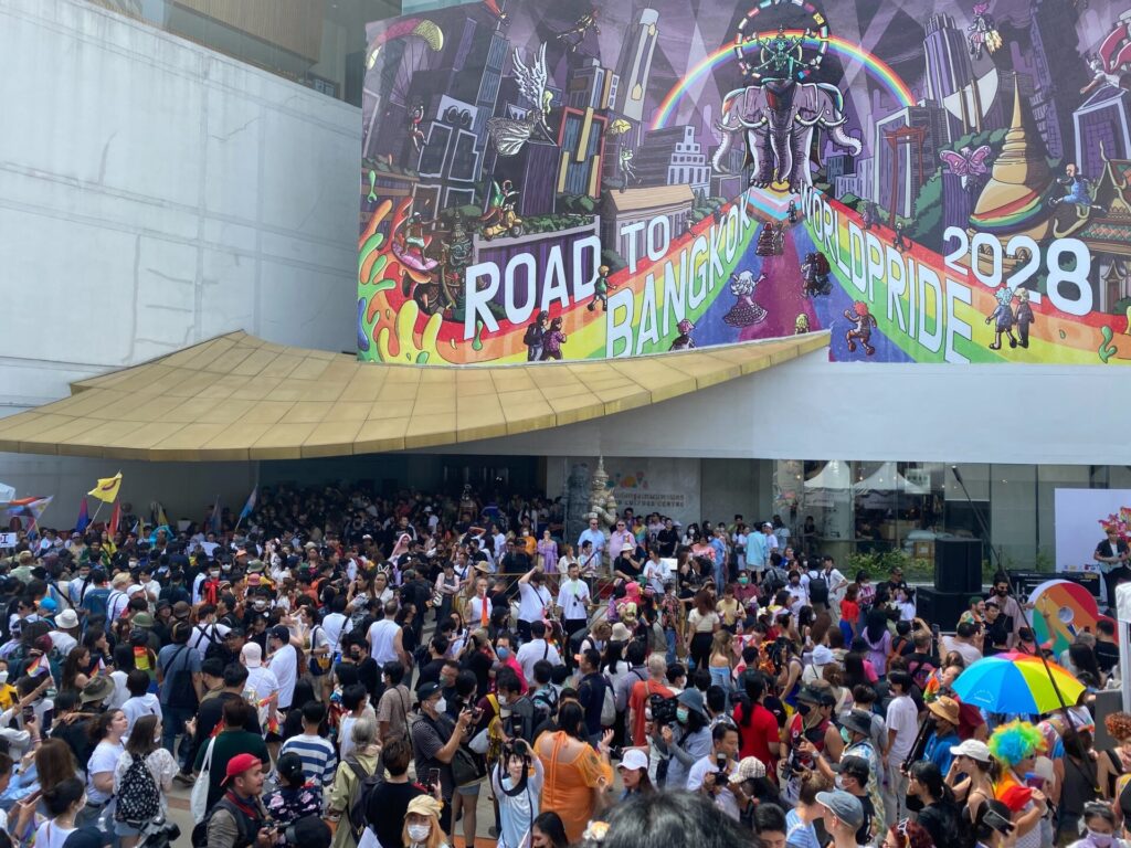 บริเวณหน้าหอศิลป์ฯ เป็นจุดเริ่มต้นการตั้งขบวนพาเหรด Pride Parade 2023 ซึ่งจะมีการเคลื่อนขบวนจากหอศิลปกรุงเทพฯ ผ่านศูนย์การค้าสยามดิสคัฟเวอรี่ สยามเซ็นเตอร์ และสยามพารากอน และสิ้นสุดที่ศูนย์การค้าเซ็นทรัลเวิลด์