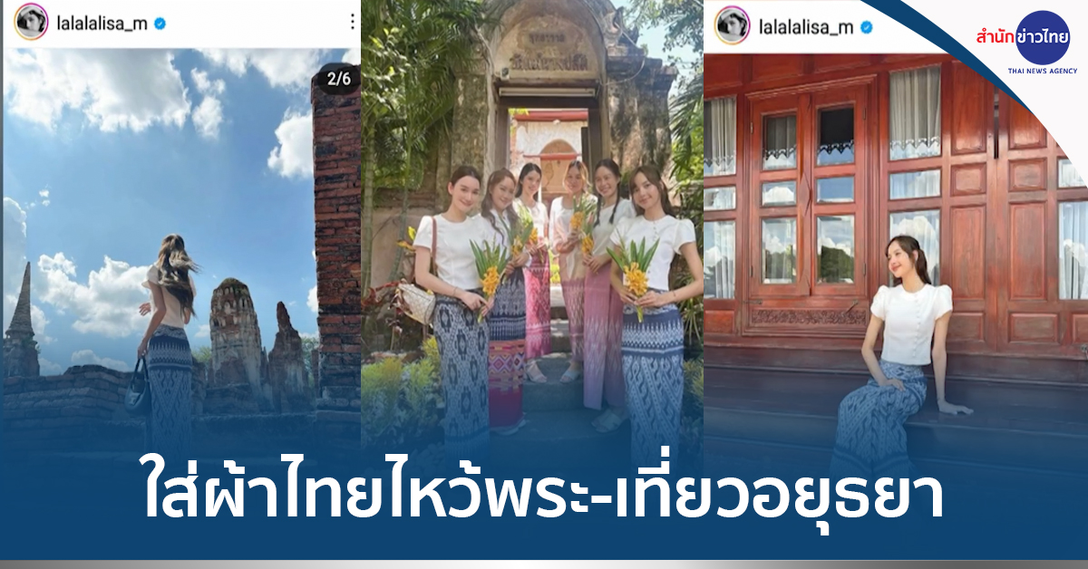 5 มิ.ย.-ยอดแชร์และถูกใจถล่มทลาย หลัง “ลิซ่า” ลลิษา มโนบาล วง BLACKPINK โพสต์ไอจีใส่ชุดผ้าไทยเที่ยววัด-ไหว้พระที่พระนครศรีอยุธยา เผยแพร่ Soft Power ไทยออกสู่สายตาคนทั่วโลก เพราะมีผู้ติดตามไอจีของลิซ่า ถึง 94.5 ล้านคน