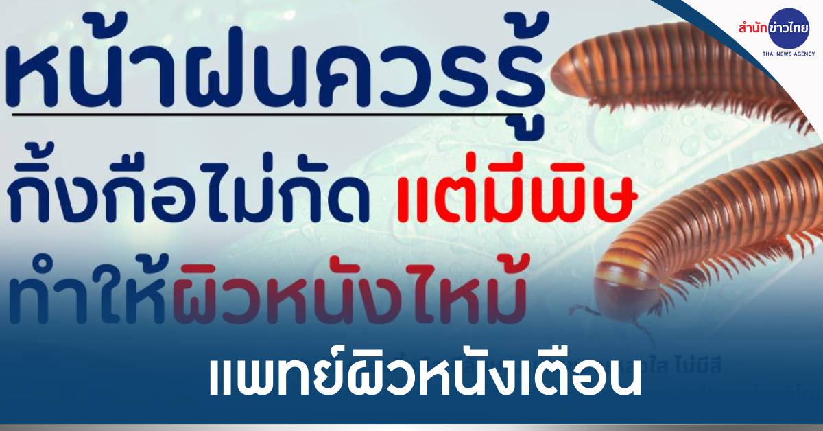 กทม. 10 มิ.ย.-สถาบันโรคผิวหนัง กรมการแพทย์ เตือนประชาชนในช่วงหน้าฝนให้ระมัดระวัง “กิ้งกือ” แม้จะไม่ใช่สัตว์อันตราย ไม่กัด แต่มีพิษ ที่ส่งผลให้ผิวหนังระคายเคืองได้
