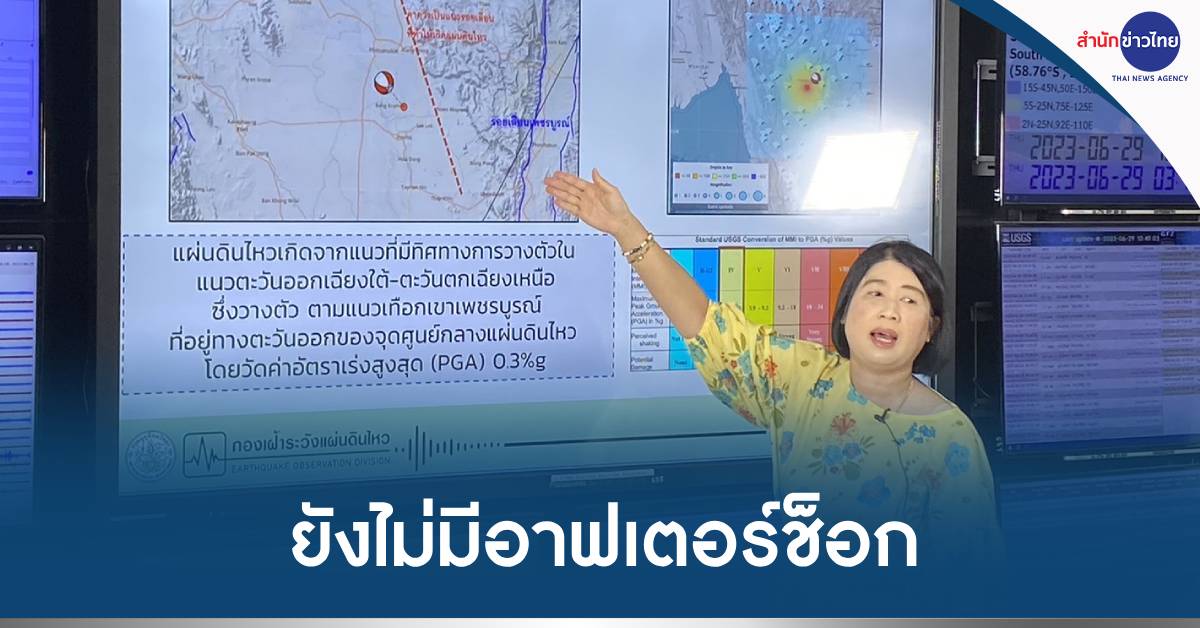 กรมอุตุฯ 29 มิ.ย.-อธิบดีกรมอุตุฯ เผยยังไม่มีอาฟเตอร์ช็อกจากเหตุแผ่นดินไหวที่พิษณุโลก ขนาด 4.5 เมื่อคืนที่ผ่านมา แต่มีโอกาสเกิดขึ้นได้ พบไม่ได้เกิดจากรอยเลื่อนมีพลัง