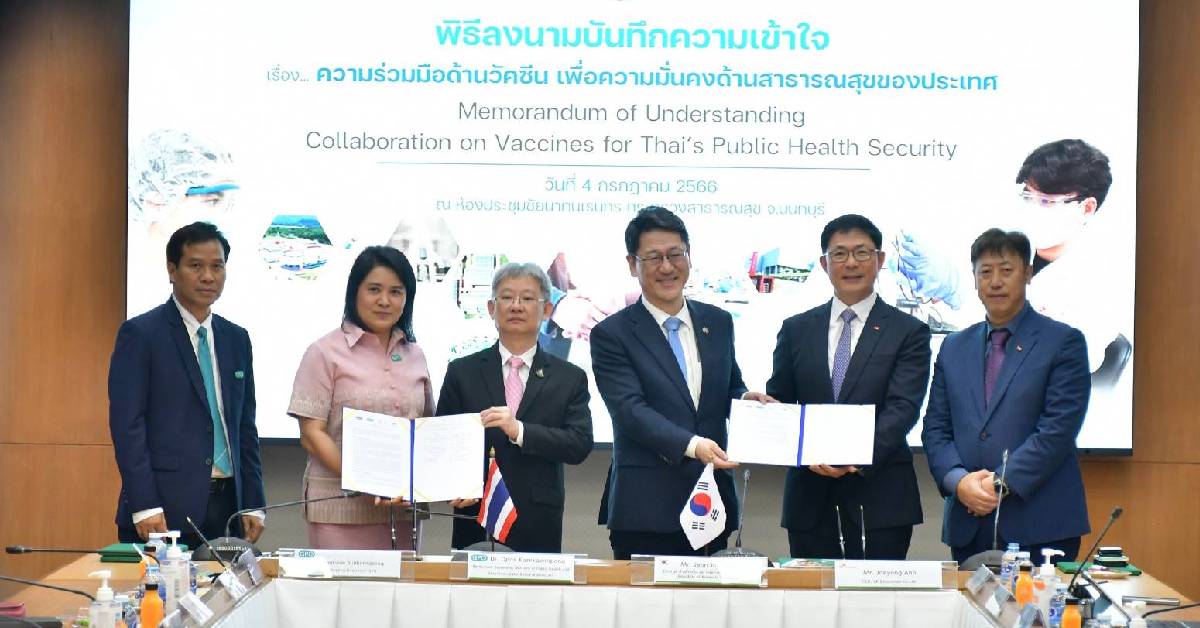 สธ. 4 ก.ค. – องค์การเภสัชกรรมลงนามร่วมมือกับเกาหลี ถ่ายทอดเทคโนโลยีผลิตวัคซีนไข้หวัดใหญ่ ชนิด 3 และ 4 สายพันธุ์แบบเชื้อตาย จากเซลล์เพาะเลี้ยง หวังช่วยพัฒนาคุณภาพชีวิตประชาชน สาเหตุเลือกไทย เพราะมีศักยภาพและที่ตั้งการผลิตที่ดี