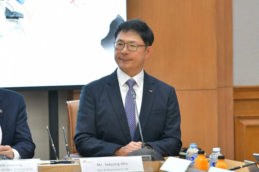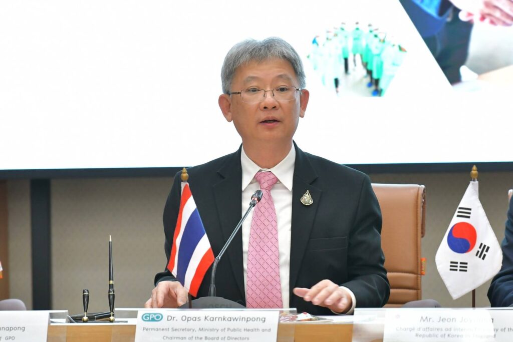 นพ.โอภาส การย์กวินพงศ์ ปลัดกระทรวงสาธารณสุข เป็นประธานในการลงนามความร่วมมือระหว่าง พญ.มิ่งขวัญ สุพรรณพงศ์ ผอ.องค์การเภสัชกรรม กับ Mr.Ahn Jae Yong CEO บริษัท SK bioscience Co.,Ltd ในการผลิตวัคซีนป้องกันไข้หวัดใหญ่จากเซลล์เพาะเลี้ยง เพื่อความมั่นคงด้านวัคซีนของประเทศและภูมิภาค โดยรายละเอียดของพัฒนาวัคซีนจะผลิตจากเซลล์เพาะเลี้ยงชนิดเชื้อตาย ชนิด 3 และ 4 สายพันธุ์ ในรูปแบบของวัคซีนพร้อมบรรจุ และถ่ายทอดเทคโนโลยีกระบวนการบรรจุ เพื่อผลิตวัคซีนสำเร็จรูป ใช้สถานที่ขององค์การเภสัชกรรมในการตั้งโรงงานผลิต คาดว่ากระบวนการผลิตวัคซีนต้นแบบจะเสร็จ 1-2 ปี และในอนาคตอาจมีการศึกษาวิจัยเรื่องการผลิตวัคซีนงูสวัด