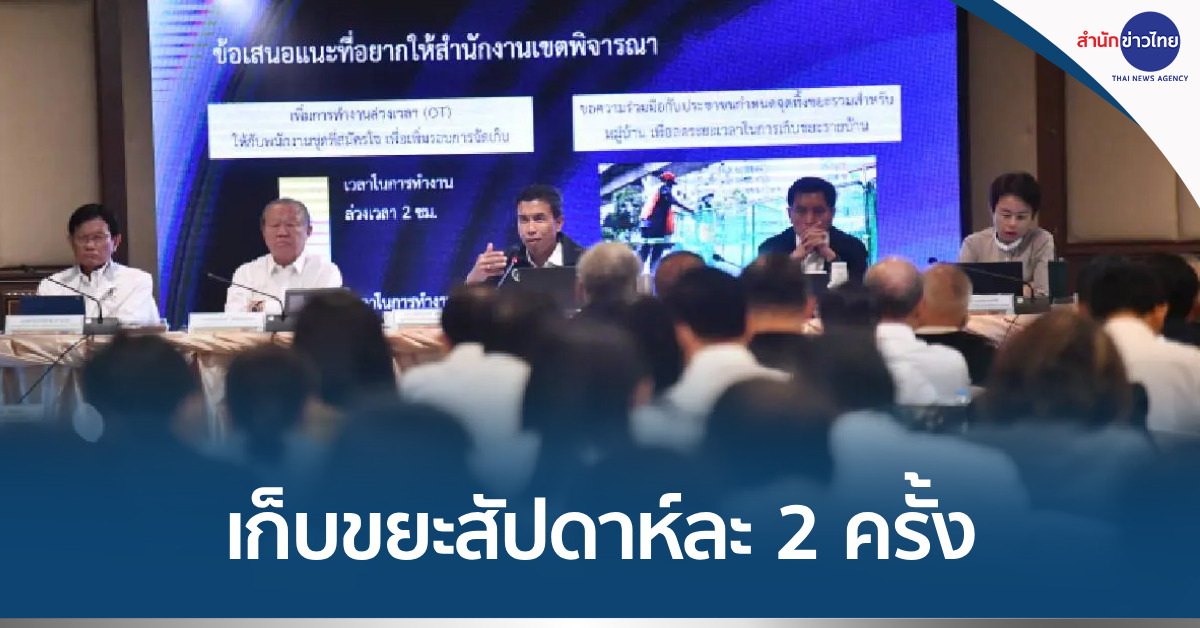 กรุงเทพฯ 6 ก.ค. – ผู้ว่าฯ กทม.สั่งเพิ่มประสิทธิภาพการจัดเก็บขยะและใช้รถขยะเช่าอย่างคุ้มค่า พิจารณาค่าล่วงเวลาเจ้าหน้าที่ กำหนดความถี่การจัดเก็บอย่างน้อยสัปดาห์ละ 2 ครั้ง และปรับเส้นทางการจัดเก็บใหม่
