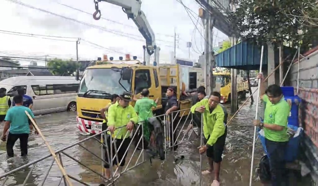 ผู้ว่าฯ ชัชชาติ เปิดเผยขณะลงพื้นที่ว่า เมื่อคืนมีฝนตกลงมาประมาณ 140 มม. ส่งผลให้น้ำท่วมหนัก โดยจุดนี้มีปริมาณน้ำสูง 40 ซม. ขณะนี้น่าจะลดลงแล้ว 10-20 ซม. สถานการณ์เริ่มดีขึ้น ตอนนี้นำรถโมบายปั๊มมาดูด 4 คัน น้ำเริ่มลดจนเริ่มเห็นฝาท่อระบายน้ำบ้างแล้ว แต่ต้องมีคนคอยตักขยะด้วย เพราะยังมีขยะมาอุดอยู่ จึงระดมสรรพกำลังมาตรงจุดนี้ เพราะเป็นจุดที่ต่ำที่สุด และเมื่อคืนยังเป็นจุดที่มีฝนตกหนักด้วย