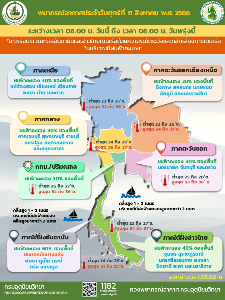 อนึ่ง พายุดีเปรสชัน “ขนุน” (KHANUN) ปกคลุมคาบสมุทรเกาหลี ในขณะที่พายุไต้ฝุ่น “แลง” (LAN) มีแนวโน้มจะเคลื่อนขึ้นฝั่งประเทศญี่ปุ่น ในช่วงวันที่ 14-15 ส.ค.66 ขอให้ผู้ที่จะเดินทางไปบริเวณดังกล่าว โปรดตรวจสอบสภาพอากาศก่อนออกเดินทางในระยะนี้