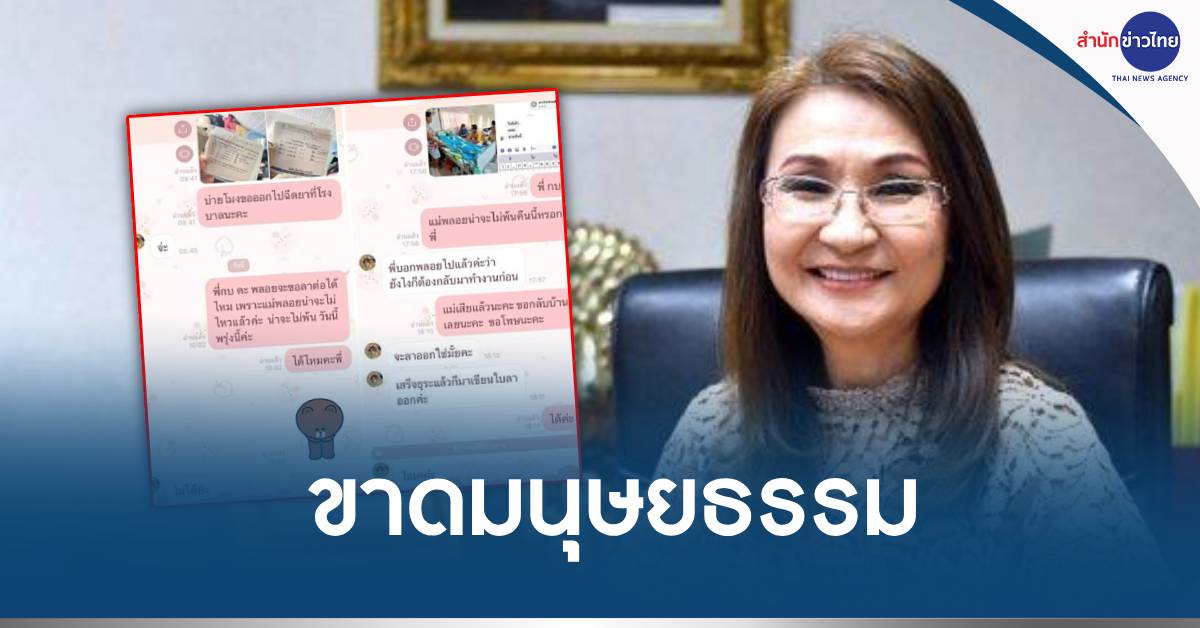 รศ.ดร.นันทนา นันทวโรภาส คณบดีวิทยาลัยสื่อสารการเมือง มหาวิทยาลัยเกริก ระบุถึงข้อสนทนาระหว่างลูกจ้างสาวรายหนึ่งคุยกับหัวหน้างาน กรณีขอลางานเพื่อดูใจแม่ที่ใกล้จะเสียชีวิต แต่ไม่ได้รับอนุญาตให้ลางาน และสุดท้ายให้มาลาออก จนเป็นกระแสร้อนแรงในโลกโซเชียลว่า ถ้ามองในแง่ของคนทั่วไปจะมองว่าคุณกบหัวหน้างานเป็นคนใจดำใจร้าย แต่ถ้ามองตามหลักสากลคือเป็นการละเมิดสิทธิมนุษยชน คุณพลอยลูกจ้างก็มีความเป็นมนุษย์ มีสิทธิในการลากิจ ลาป่วย ลาพักผ่อน กรณีมีเหตุฉุกเฉิน เช่น ญาติเสีย ก็มีสิทธิลาเพื่อไปจัดการพิธีการต่างๆ