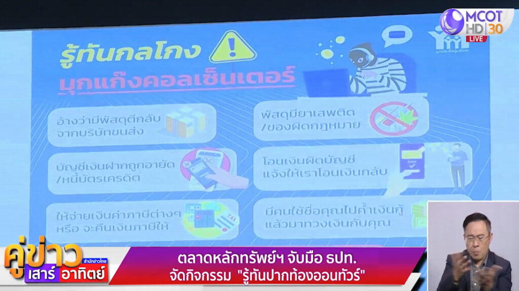 นอกจากนี้ ยังให้จุดสังเกต รู้ทันกลโกงหลอกลงทุน ว่า ถ้าให้โอนเงินเข้าบัญชีบุคคลธรรมดา คือ โกง 100% ถ้าอ้างเป็นองค์กรที่น่าเชื่อถือ เช่น ป.ป.ส. สรรพากร กรมที่ดิน ฯลฯ ให้กดลิงก์ แอดไลน์ โหลดแอป ให้ติดต่อหน่วยงานนั้นโดยตรง.-สำนักข่าวไทย