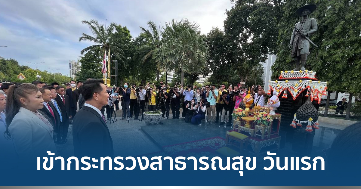 บรรยากาศที่กระทรวงสาธารณสุขในการเข้ารับตำแหน่งอย่างเป็นทางการของ 2 รัฐมนตรี นพ.ชลน่าน ศรีแก้ว รมว.สาธารณสุข และนายสันติ พร้อมพัฒน์ รมช.สาธารณสุข ถือฤกษ์ดี เวลา 07.11 น.สักการะสิ่งศักดิ์สิทธิ์ ประจำกระทรวง ทั้งพระพุทธนิรามัย, ต้นพระศรีมหาโพธิ์, ศาลพระพรหม, พระราชานุเสาวรีย์สมเด็จพระมหิตาราธิเบศร์อดุลยยาเดชวิกรมพระบรมราชชนกและสมเด็จพระศรีนครินทราบรมมราชชนนี, พระอนุสาวรีย์สมเด็จพระเจ้าบรมวงศ์เธอกรมพระยาชัยนาทนเรนทร, พระอนุสาวรีย์สมเด็จพระเจ้าพี่นางเธอเจ้าฟ้ากัลยานิวัฒนากรมหลวงนราธิวาสราชนครินทร์ และพระพุทธมหานวนาคปฏิมากร จากนั้นเข้าห้องทำงานชั้น 4 ลงนามในหนังสือเข้ารับตำแหน่งรัฐมนตรีอย่างเป็นทางการ