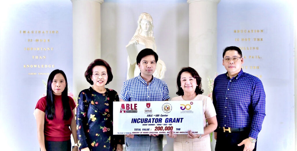 12 ก.ย. – ศูนย์บ่มเพาะวิสาหกิจ มหาวิทยาลัยอัสสัมชัญ (ABLE-UBI Center) ร่วมกับกระทรวงการอุดมศึกษา วิทยาศาสตร์ วิจัยและนวัตกรรม (อว.) มอบรางวัลให้แก่ผู้ชนะเลิศในโครงการบ่มเพาะผู้ประกอบการสำหรับธุรกิจสตาร์ทอัพ โดยมีวัตถุประสงค์เพื่อสนับสนุนการริเริ่มธุรกิจสตาร์ทอัพ และส่งเสริมการคิดค้นและนำนวัตกรรมมาใช้ในอุตสาหกรรมที่หลากหลาย