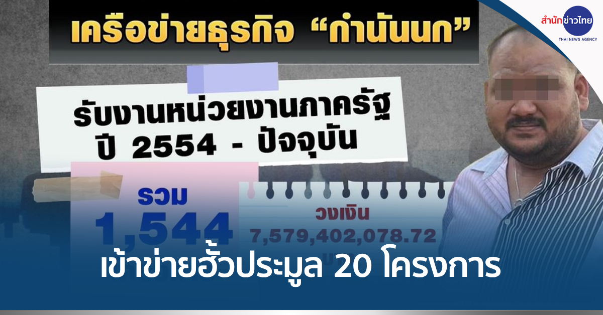การตรวจสอบล่าสุดพบว่า 2 บริษัทของกำนันนก คือ บริษัท ป.พัฒนารุ่งโรจน์ก่อสร้าง และบริษัท ป.รวีกนกก่อสร้าง ได้เข้าไปรับงานจัดซื้อจัดจ้างของหน่วยงานรัฐ 1,544 โครงการ ตั้งแต่ปี 2554 จนถึงปัจจุบัน โดยบริษัท ป.พัฒนารุ่งโรจน์ก่อสร้าง รับงานไป 923 โครงการ และบริษัท ป.รวีกนกก่อสร้าง รับไป 621 โครงการ รวมเงินงบประมาณกว่า 7,500 ล้านบาท (ตัวเลขเต็มๆ 7,579,402,078.72 บาท) และวงเงินทำสัญญารวมเกือบ 7,000 ล้านบาท (ตัวเลขเต็มๆ 6,964,815,249.47 บาท)
