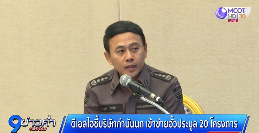 นางพิชญา ธารากรสันติ โฆษกกรมสอบสวนคดีพิเศษ พร้อมด้วยร้อยตำรวจเอก สุรวุฒิ รังไสย์ ผอ.กองคดีความผิดเกี่ยวกับการเสนอราคาต่อหน่วยงานของรัฐ หรือกองฮั้วประมูล แถลงกรณีเครือข่ายบริษัทกำนันนก หรือนายประวีณ จันทร์คล้าย ผู้ต้องหาคดีพันตำรวจตรี ศิวกร สายบัว สารวัตรทางหลวง ถูกยิงเสียชีวิตในงานเลี้ยง ว่าอาจเข้าข่ายฮั้วประมูล
