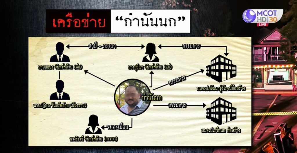 จากข้อมูลนี้ กองคดีฯ ซึ่งมีอำนาจหน้าที่สืบสวนสอบสวนคดีฮั้วประมูลที่มีมูลค่าสัญญาตั้งแต่ 30 ล้านบาทขึ้นไป ได้ไล่ตรวจสอบบริษัทกำนันนกแล้ว พบว่า 20 โครงการของบริษัทของกำนันนก มีเหตุอันควรสงสัยเข้าทำสัญญากับภาครัฐโดยไม่โปร่งใส เข้าข่ายฮั้วประมูล ซึ่งหากแยกโดยละเอียดคือ บริษัท ป.พัฒนารุ่งโรจน์ก่อสร้าง ได้งานไป 18 โครงการ และบริษัท ป.รวีกนก ก่อสร้าง ได้งานไป 2 โครงการ