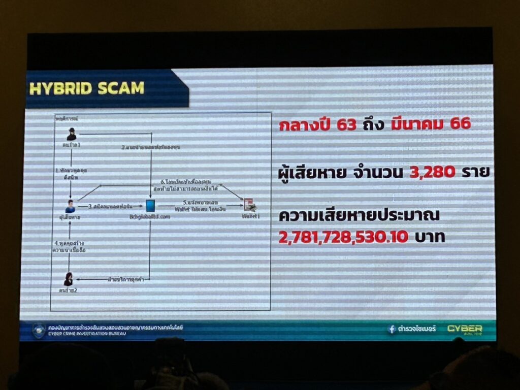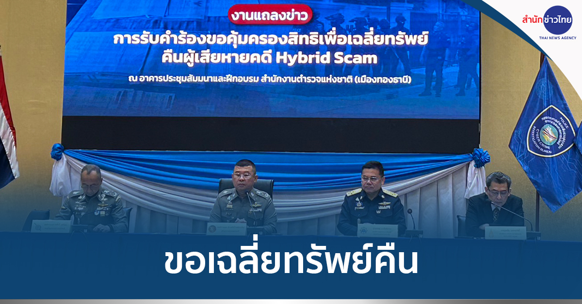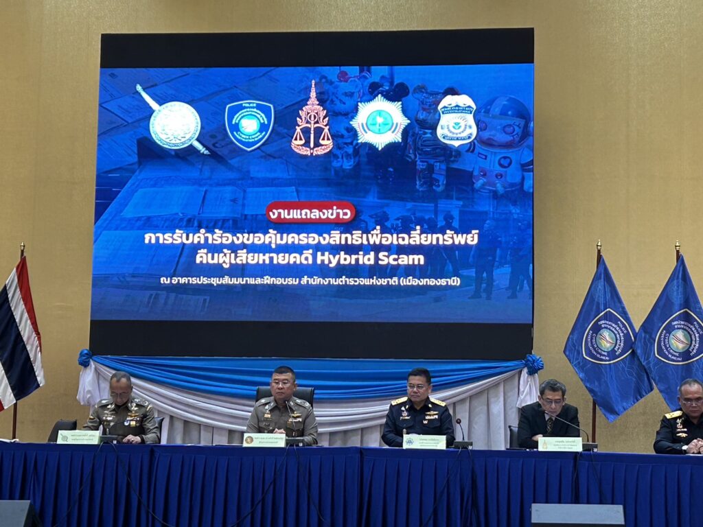 พล.ต.อ.ดำรงศักดิ์ กิตติประภัสร์ ผู้บัญชาการตำรวจแห่งชาติ (ผบ.ตร.) พล.ต.อ.ต่อศักดิ์ สุขวิมล รองผบ.ตร., พล.ต.ท.วรวัฒน์ วัฒน์นครบัญชา ผบช.สอท. และหน่วยงานที่เกี่ยวข้อง ร่วมกันแถลงข่าว “การรับคำร้องขอคุ้มครองสิทธิเพื่อเฉลี่ยทรัพย์คืนผู้เสียหายคดี Hybrid Scam” ที่กองบัญชาการตำรวจสืบสวนสอบสวนอาชญากรรมทางเทคโนโลยี โดยมีการนำทรัพย์สินที่ยึดอายัดได้ ทั้ง โฉนด อสังหาริมทรัพย์คอนโด บ้านหรู รถยนต์ สินค้าแบรนด์เนม เงินสด และของกลางอื่นอีกหลายรายการ ผลจากปฏิบัติการ Trust No One EP1-5 ซึ่งมีการตรวจค้น 72 จุดทั่วประเทศ สามารถจับผู้ต้องหา ยึดอายัดทรัพย์ นำมาสู่ขั้นตอนที่ผู้เสียหายสามารถยื่นเอกสารขอเฉลี่ยทรัพย์คืน